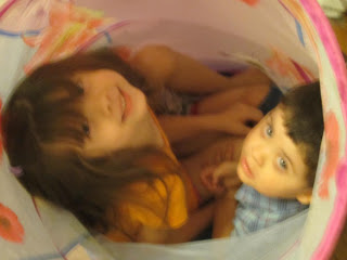 | Playing in the tunnel that goes to her Tinkerbell Tent! |